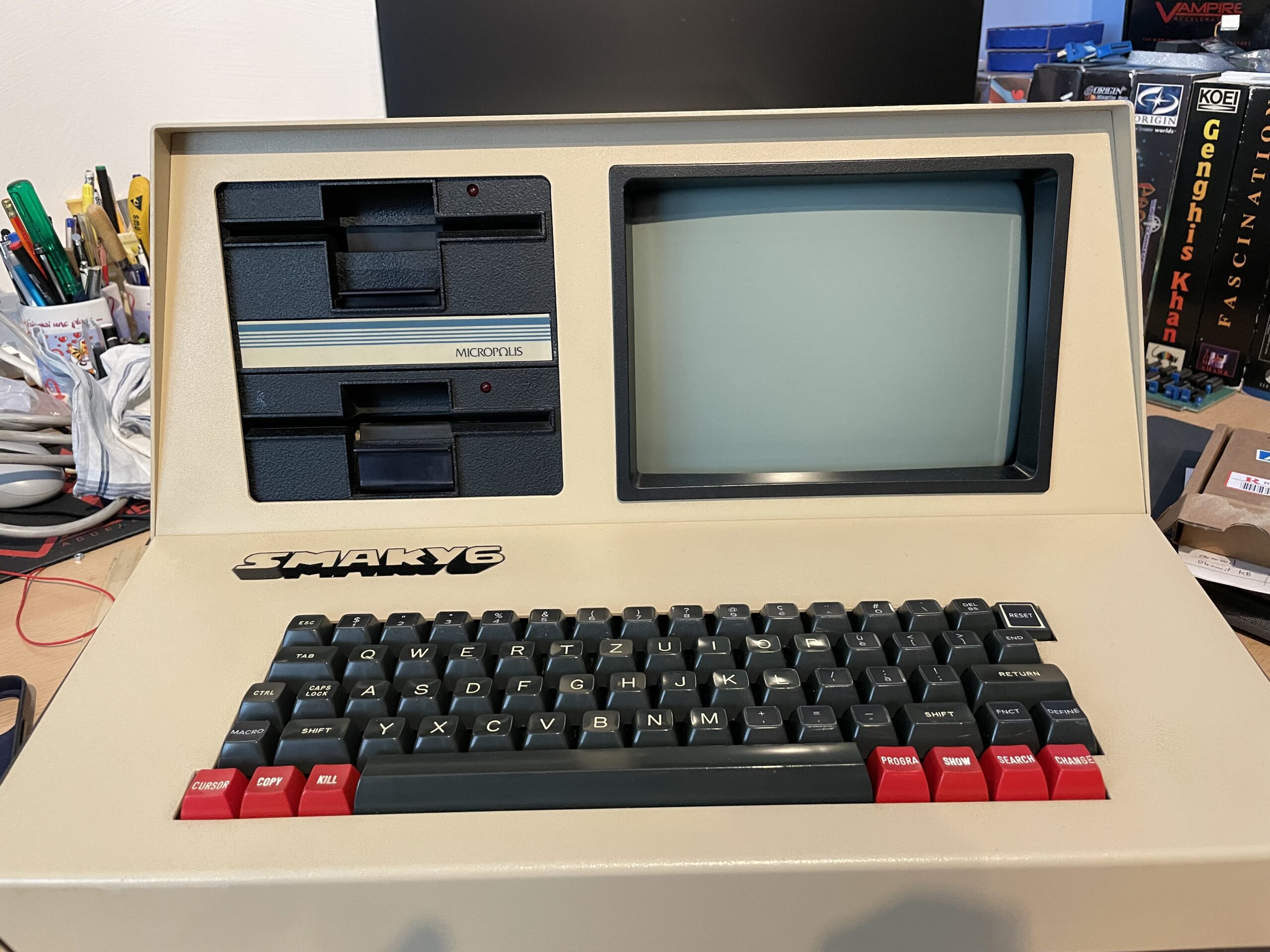 Der Smaky ist ein Computer, der in der Westschweiz entwickelt und hergestellt wurde. Er wurde hauptsächlich in Schulen eingesetzt. Der Smaky 6 ist ein 8-Bit-Computer auf Basis einer Z80P CPU, der mit einem proprietären Betriebssystem namens SAMOS läuft. Der Smaky 130 ist das letzte Modell der 16-Bit-Reihe, wird von einem 68030 angetrieben und verfügt über eine Grafikkarte, die tausende von Farben darstellt. Sein ebenfalls proprietäres Betriebssystem ist multitaskingfähig und kann sogar eine Macintosh-Emulation parallel auf zwei Bildschirmen ausführen.